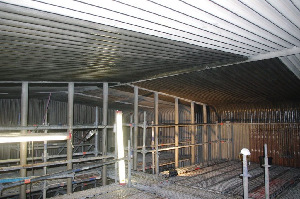 Böse Überraschung an der Kesseldecke unseres niederländischen Kunden – durch eine veränderte Kesselfahrweise ist die Auftragschweissung stark angegriffen. Als Sofort-Maßnahme haben wir vor Ort eine Nickel-Basis-Legierung auf die geschädigten Flächen gespritzt und somit einen aufwendigen Austausch von Membranwandflächen vermieden. Während der Kessel wieder planmäßig läuft, kann der Kunde auf Basis einer Schadensanalyse in Ruhe entscheiden, welche weitergehenden Maßnahmen eingeleitet werden müssen, um dieses Schadensbild nach nur 18 Monaten Reisezeit zukünftig zu vermeiden.